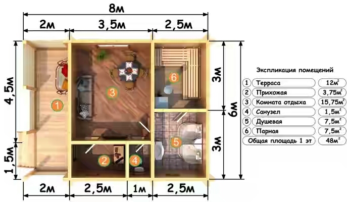 Польза для здоровья - доказано, что древесина положительно влияет на психическое здоровье и благополучие. Проживание в деревянном доме может снизить уровень стресса и улучшить качество сна.