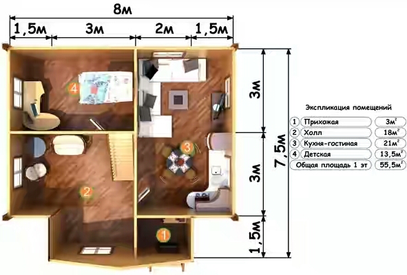 Польза для здоровья - доказано, что древесина положительно влияет на психическое здоровье и благополучие. Проживание в деревянном доме может снизить уровень стресса и улучшить качество сна.